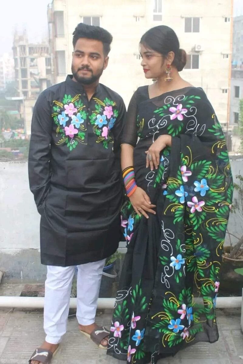 •   হাফসিল্ক শাড়ি এবং ধুপিয়ান কটন পাঞ্জাবি