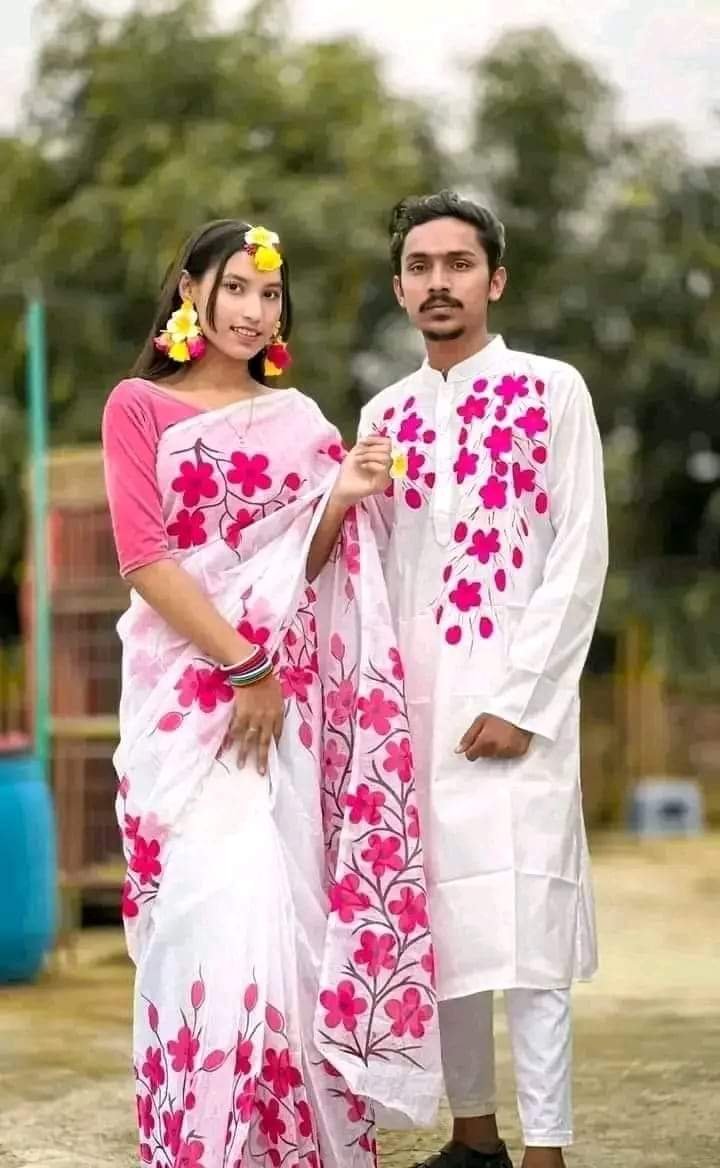 •   হাফসিল্ক শাড়ি এবং ধুপিয়ান কটন পাঞ্জাবি
