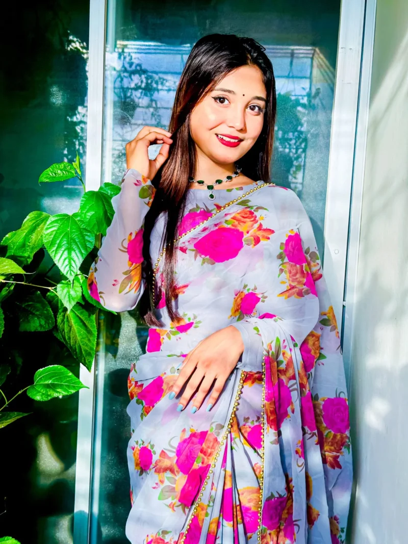 •   ইন্ডিয়ান ওয়েটলেস প্রিন্ট জর্জেট শাড়ি