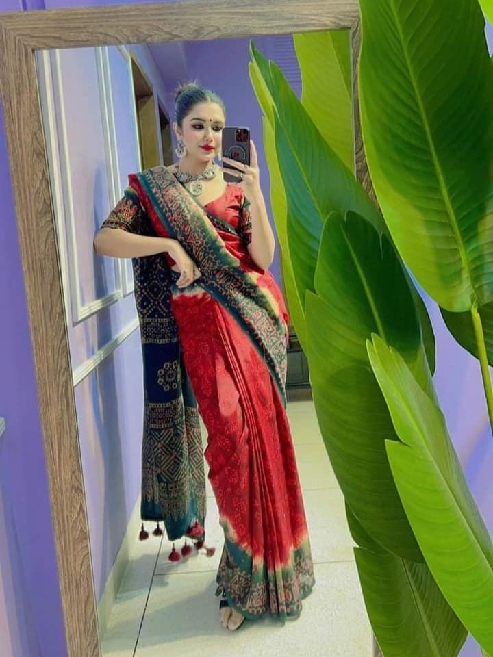 ➡ যারা কুচি বেশি দিয়ে শাড়ি পড়তে পছন্দ করেন তাদের জন্য এই শাড়ীটি বেস্ট কারন এই শাড়ীর সাথে ব্লাউজ পিস দেওয়া থাকবে।